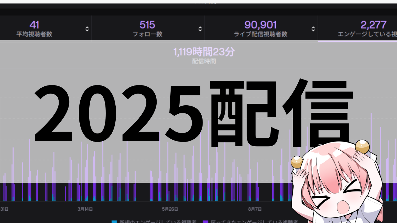 2025年が終わり、普段配信しているプラットフォームTwitchからRecapと言われる配信のデータをまとめた通知表のようなものが配布された 僕はほぼ毎週末土日に配信してきている。特に今年は夏冬とコミケにサークル参加するということもあり、作業時間は例年よりも多いはずである。 作業時間≒配信時間である僕にとって、今年は配信もすごく頑張ったと言っていい一年である。 間違いなく2024年よりも良くなっているはずであり、右肩上がりであるはずで 僕はこれから継続は力であるということを証明する &nbs ...